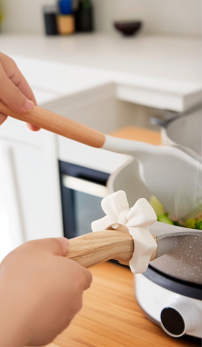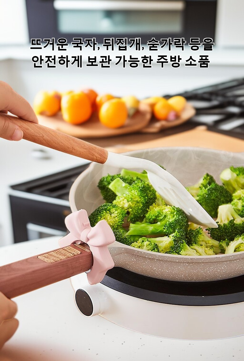 하트와 활 모양 디자인, 실리콘 소재로 내열성 우수, 주걱 안정적으로 거치, 주방 정리 효율적, 세척 용이, 다양한 색상 제공